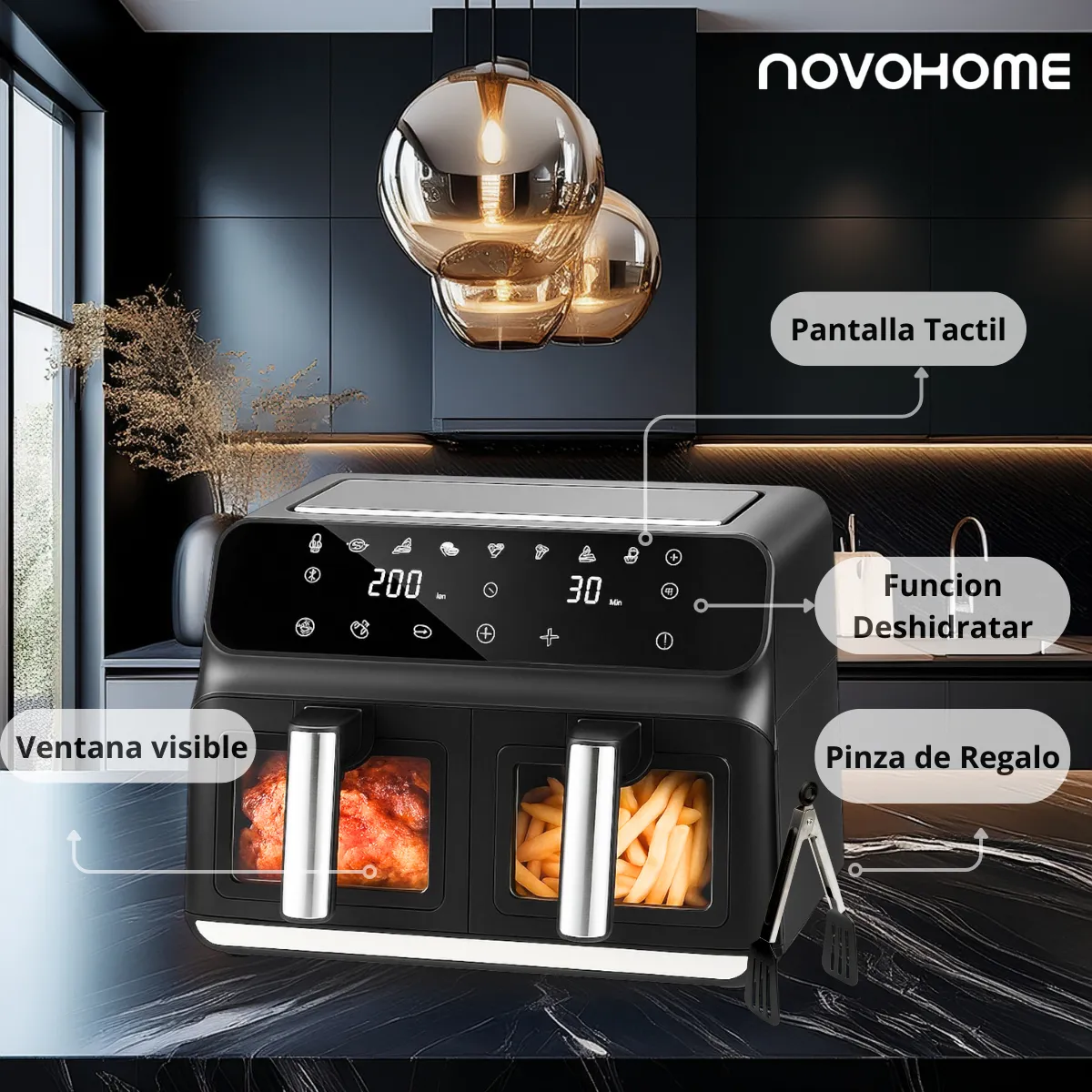 Freidora de Aire Novohome Digital 8Lts Doble Canastos 4+4 1700W NH-AF DUAL 100W